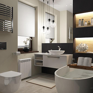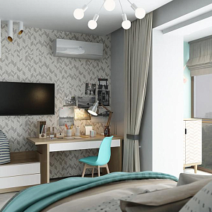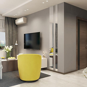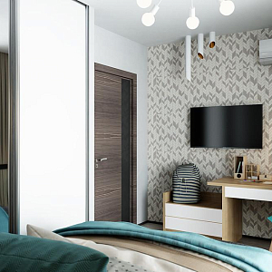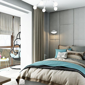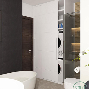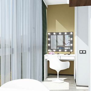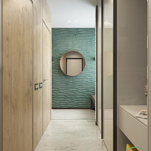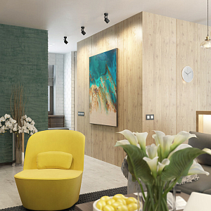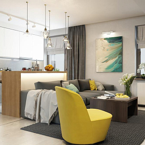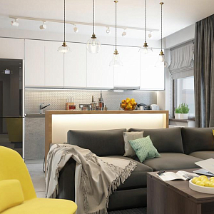 Интерьер столовой cветовыми линиями, светильниками над столом и подсветкой светодиодной в современном стиле, проект «Квартира в современном стиле "Background & Accents"» №13