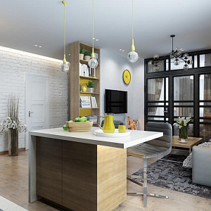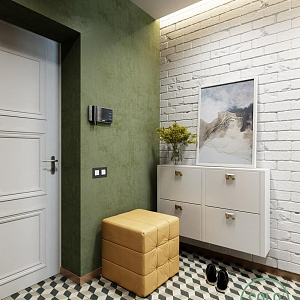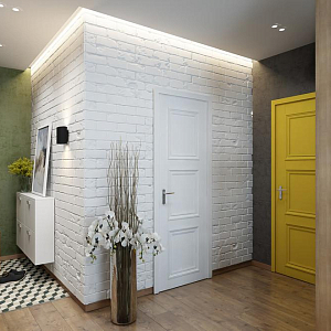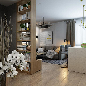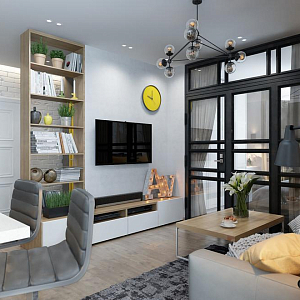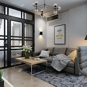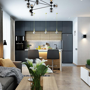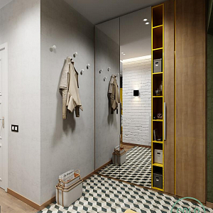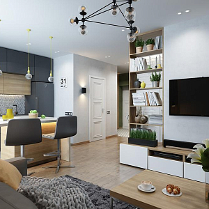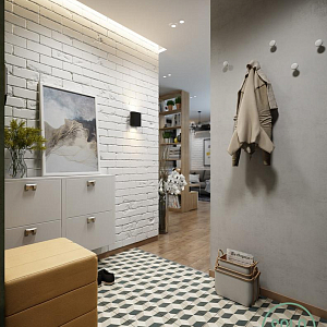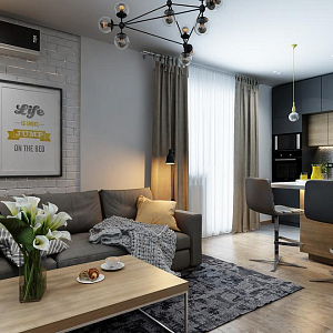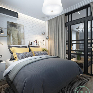 Интерьер спальни с подсветкой настенной, подсветкой светодиодной, с подсветкой, светильниками над кроватью и световыми линиями в скандинавском стиле, проект «Квартира-студия в скандинавском стиле в Новосибирске» №5