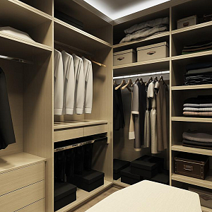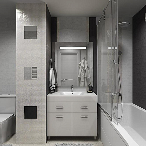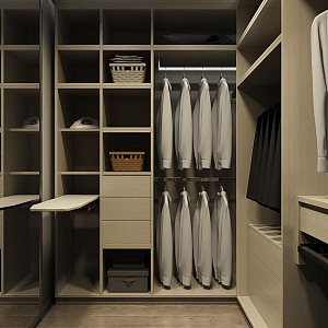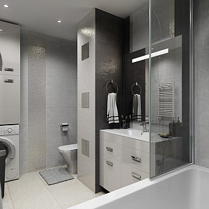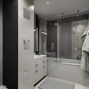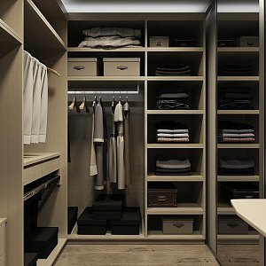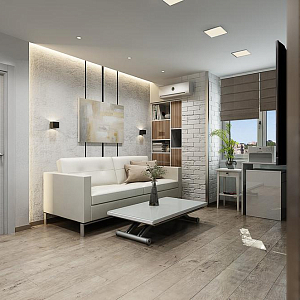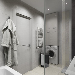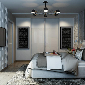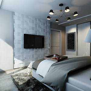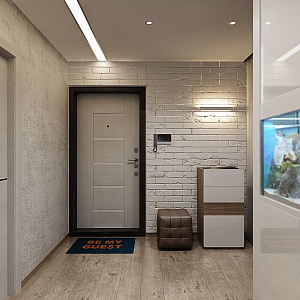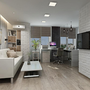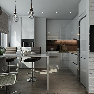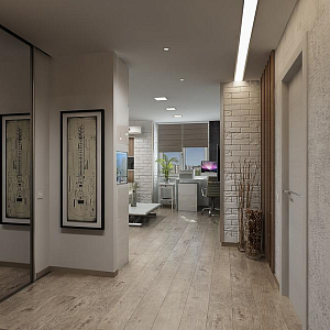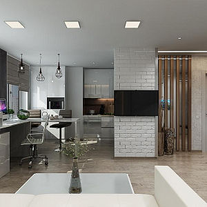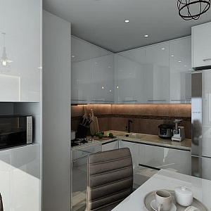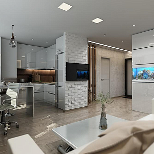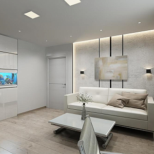 Интерьер c рабочим местом, световыми линиями, рейками с подсветкой, подсветкой настенной и подсветкой светодиодной в современном стиле, проект «Квартира в современном стиле в белых тонах» №21