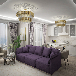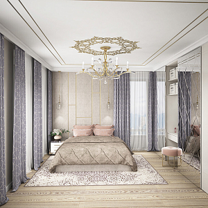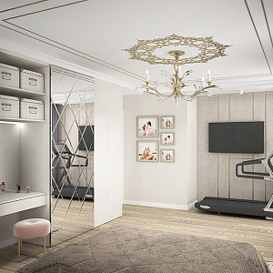 Интерьер детской c рабочим местом и подсветкой светодиодной в неоклассике, проект «Новый центр» №3