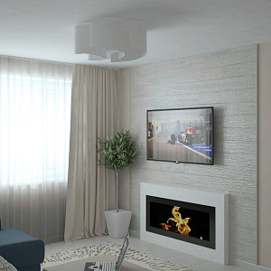 Интерьер гостиной с подсветкой настенной, подсветкой светодиодной и с подсветкой в современном стиле, проект «Уютный сканди» №4