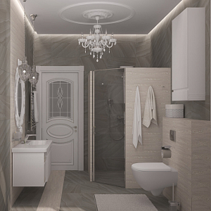 Интерьер ванной в современном стиле, проект «Коттедж для молодой семьи» №2