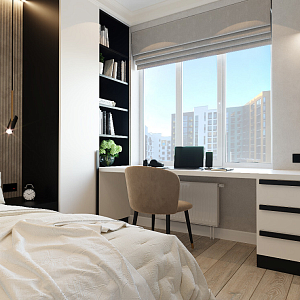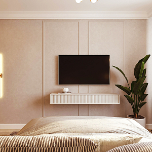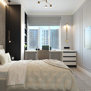 Интерьер спальни cветильниками над кроватью в неоклассике, проект «3-х комнатная квартира в ЖК «Клубный дом на Фруктовой», Ижевск. 82,72м2» №20