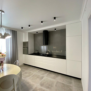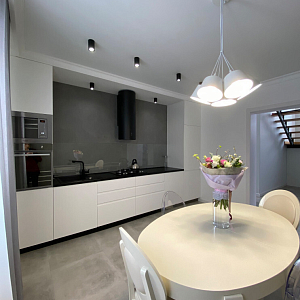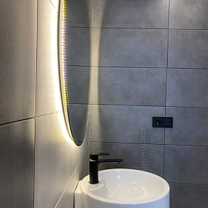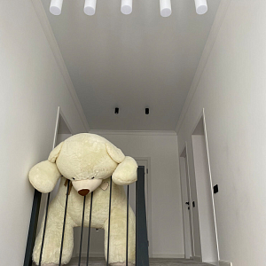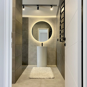 Интерьер с подсветкой настенной, подсветкой светодиодной, рейками с подсветкой и световыми линиями в современном стиле, проект «Минималистичный интерьер в частном доме» №2