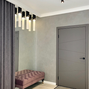 Интерьер кухни с подсветкой настенной, подсветкой светодиодной, с подсветкой и световыми линиями в современном стиле, проект «Минималистичный интерьер в частном доме» №24
