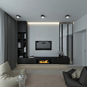 Интерьер коридора с подсветкой настенной, подсветкой светодиодной, порогом, проходной, рейками с подсветкой и световыми линиями в современном стиле, проект «Минималистичная квартира в Подмосковье, г. Видное.» №4