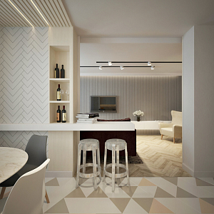 Интерьер гостиной cветовыми линиями, рейками с подсветкой, подсветкой настенной, подсветкой светодиодной и с подсветкой в современном стиле, проект «Комфортное пространство для успешной семьи» №6