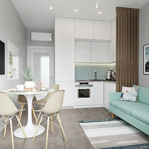 Интерьер кухни в современном стиле, проект «Квартира с отделкой от застройщика ЖК Лефортово Парк 60м2» №4