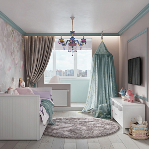 Интерьер детской в современном стиле, проект «Проект Зефир квартира для мамы с дочкой» №23