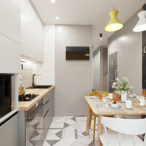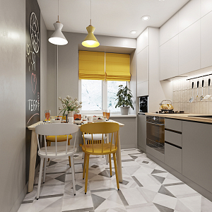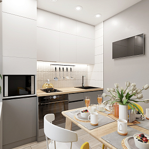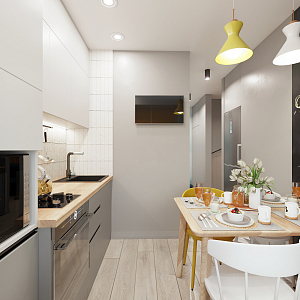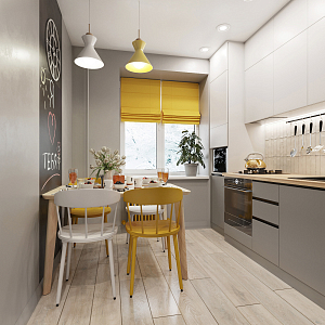 Интерьер кухни в современном стиле, проект «2х комнатная хрущевка для семьи с дочерью» №25