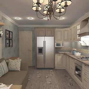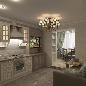 Интерьер прихожей с подсветкой настенной и подсветкой светодиодной в рустике, проект «Provense cuisine» №3