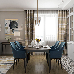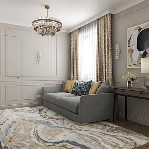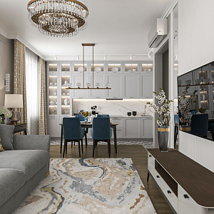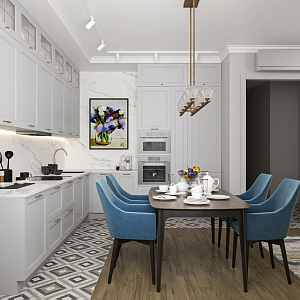 Интерьер с зонированием, без дверей, проходной, проемом, open space, переговорной и порогом в современном стиле, проект «3-х комнатная квартира для семьи с двумя детьми» №9