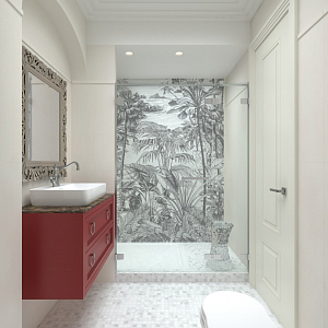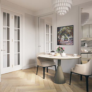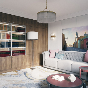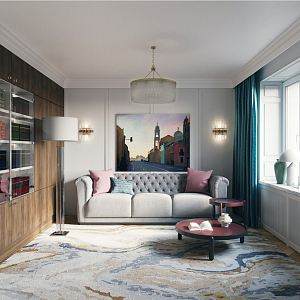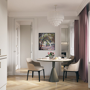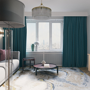 Интерьер с open space, без дверей, без окна, гостиной-столовой, зонированием, зонированием шторами, нишей, окном, переговорной, перегородкой, пластиковыми окнами, порогом, проемом, проходной, с антресолью, световыми линиями, три окна и угловым окном, прое №1