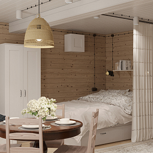 Интерьер с в деревянном доме в стиле лофт, скандинавском стиле и в стиле кантри, проект «Деревенский дом в скандинавском стиле» №2