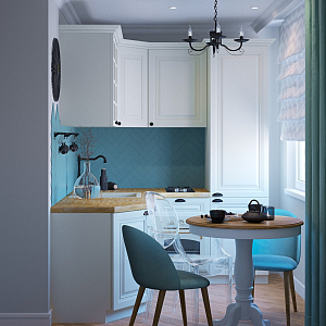 Интерьер с жалюзи, вертикальными жалюзи и дверными жалюзи, проект «Маленькая кухня в хрущевке» №2