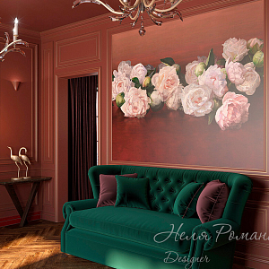 Интерьер гостиной в классическом стиле, проект «Гостиная в классическом стиле в темных тонах» №3