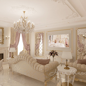 Интерьер гостиной с аркой и каретной стяжкой в ампире, барокко, готике, в классическом стиле, неоклассике и рококо, проект «Проект гостиной в классическом стиле» №1