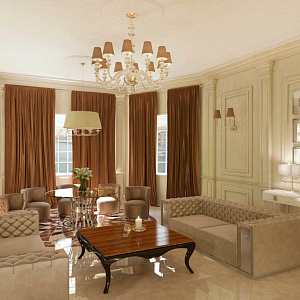 Интерьер гостиной, проект «Гостиная в классическом стиле в спокойных тонах» №1