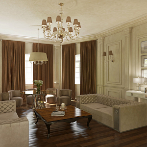 Интерьер гостиной, проект «Гостиная в классическом стиле в спокойных тонах» №2