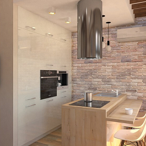 Интерьер спальни с зонированием рейками, рейками с подсветкой и подсветкой настенной, проект «Квартира студия для молодого человека» №1