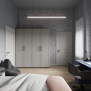Интерьер детской c рабочим местом, световыми линиями, рейками с подсветкой, подсветкой настенной и подсветкой светодиодной, проект «Дом из бруса КП "Кстининское озеро"» №24