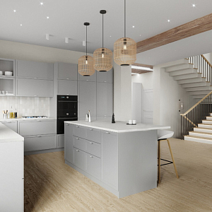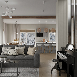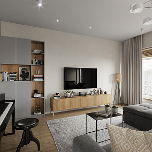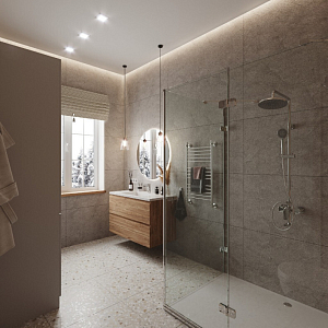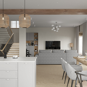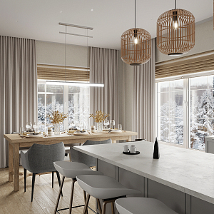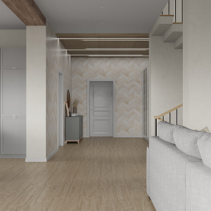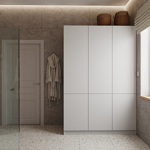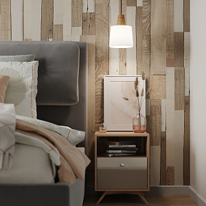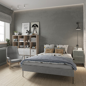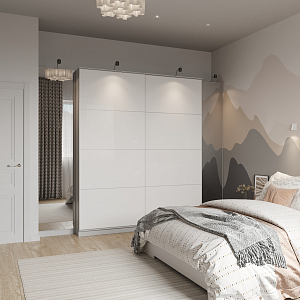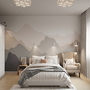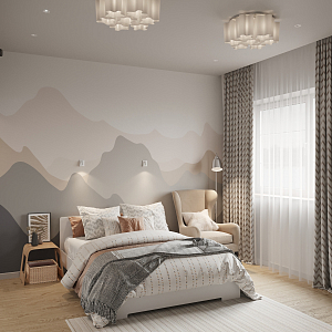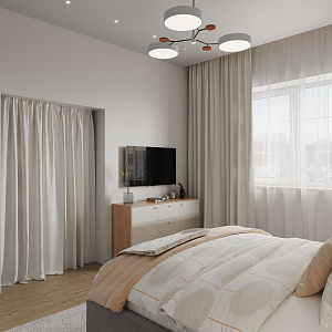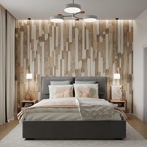 Интерьер спальни cветовыми линиями, рейками с подсветкой, подсветкой настенной, подсветкой светодиодной и светильниками над кроватью, проект «Дом в Подмосковье, "Колоски пшеницы"» №10