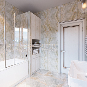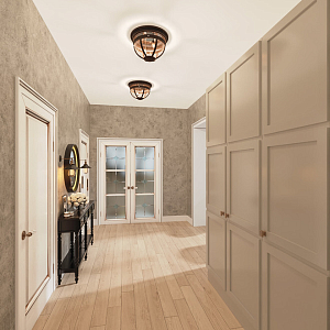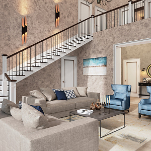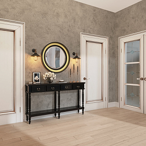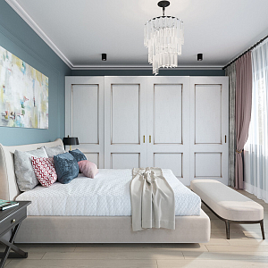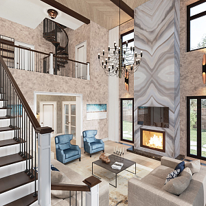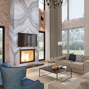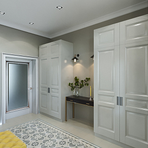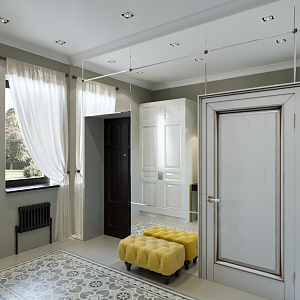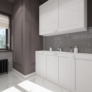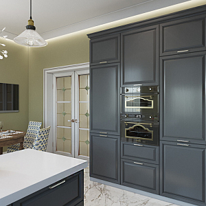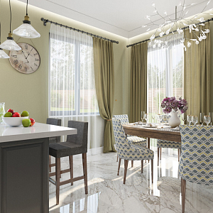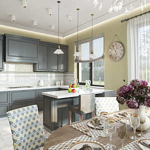 Интерьер кухни cветовыми линиями, светильниками над столом, подсветкой настенной, подсветкой светодиодной и с подсветкой в неоклассике, проект «Коттедж, пос.Мамонтовка, М.О., 300м2» №48