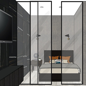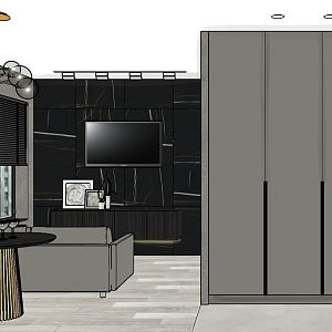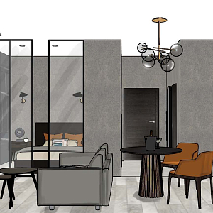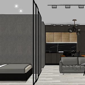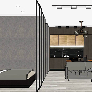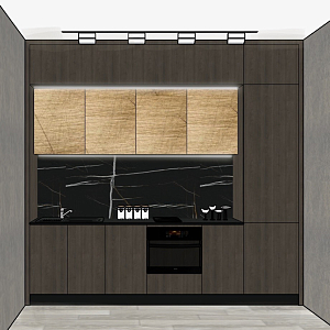 Интерьер кухни с керамогранитом на стену с телевизором, переговорной, порогом и проходной в стиле лофт, проект «Апартаменты 35м2 в г.Москва» №8