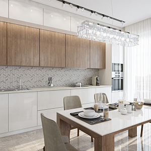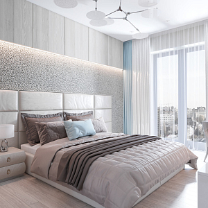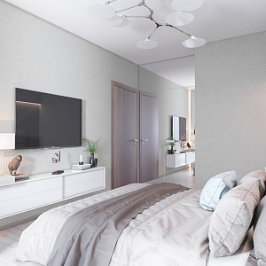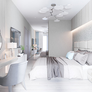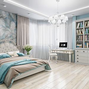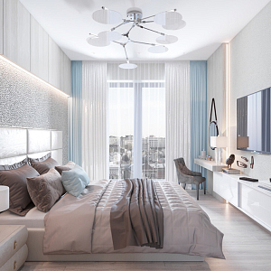 Интерьер спальни c рабочим местом в современном стиле, проект «Квартира 120м2, Сокольники» №12