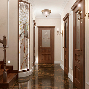 Интерьер коридора с зеркалом на двери в стиле фьюжн, проект «Проект холла в частном доме. Неоклассика» №1