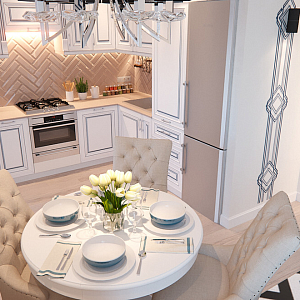 Интерьер с подсветкой настенной в стиле фьюжн, проект «Проект кухни-гостиной в современном стиле.» №2