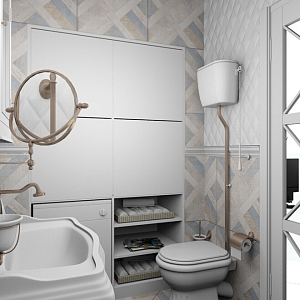 Интерьер ванной в стиле кантри и в стиле фьюжн, проект «Дизайн-проект однокомнатной квартиры "Солнечная VICTОRIA"» №2