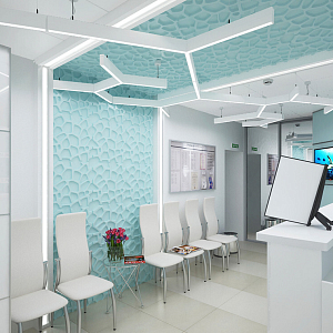 Интерьер кабинета с ресепшном в современном стиле, проект «Стоматология» №1