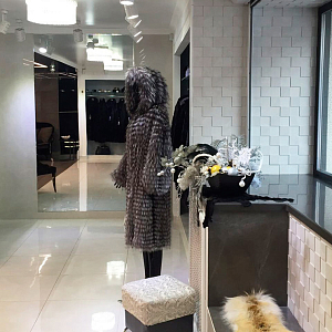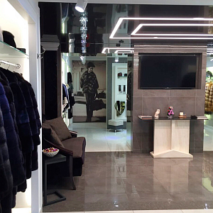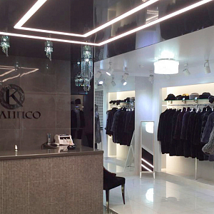 Интерьер офиса с нишей с подсветкой, световыми линиями, рейками с подсветкой, подсветкой настенной, подсветкой светодиодной и с подсветкой в современном стиле, проект «Меховой салон» №4