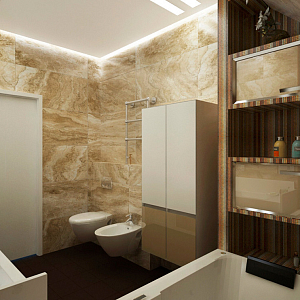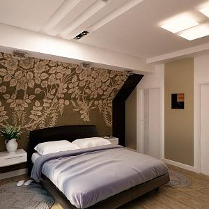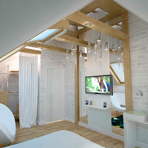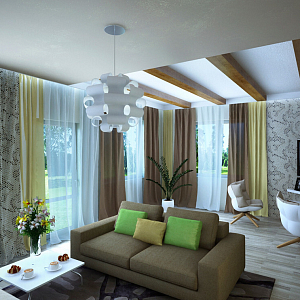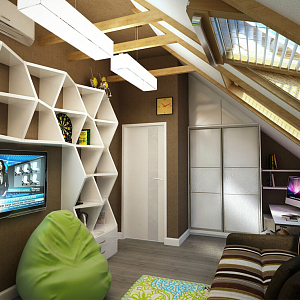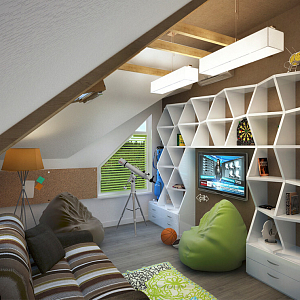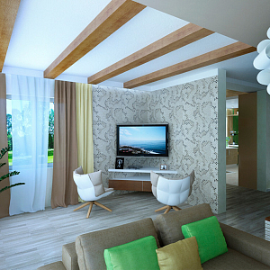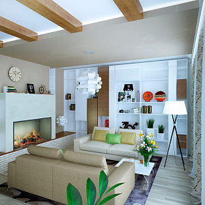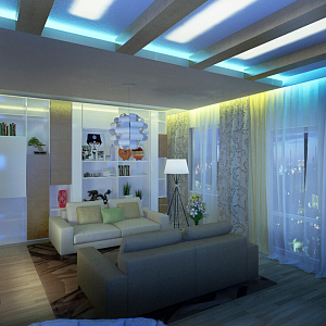 Интерьер гостиной с подсветкой настенной, подсветкой светодиодной, рейками с подсветкой, с подсветкой и световыми линиями в современном стиле, проект «Коттедж по ул. Алексеевская 6» №13