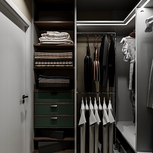 Интерьер спальни с подсветкой настенной, подсветкой светодиодной, светильниками над кроватью и с подсветкой в современном стиле, проект «ЖК На Дмитровском, г. Москва» №6