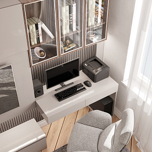 Интерьер c рабочим местом, нишей с подсветкой, подсветкой настенной, подсветкой светодиодной и с подсветкой в современном стиле, проект «Дизайн - проект двухкомнатной квартиры 60 кв.м. г. Москва.» №12