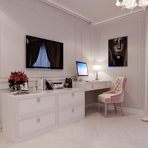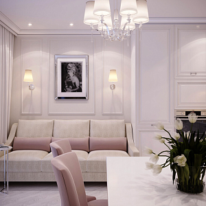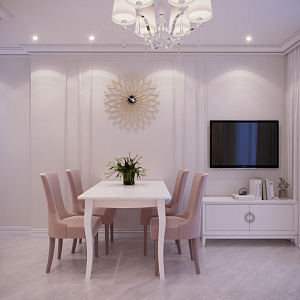 Интерьер столовой cветовыми линиями в современном стиле, проект «Дизайн - проект двухкомнатной квартиры 59 кв.м. в г. Санкт-Петербурге» №12