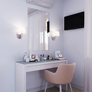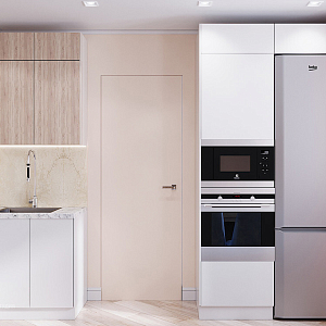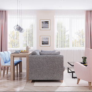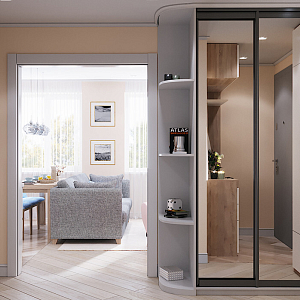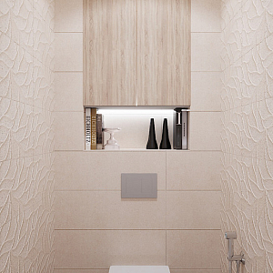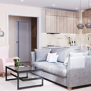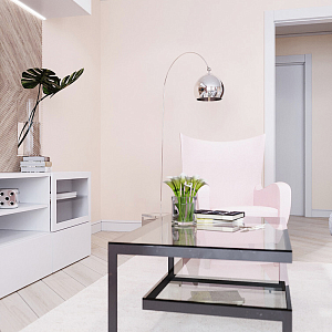 Интерьер гостиной с керамогранитом на стену с телевизором, панно за телевизором, подсветкой настенной, подсветкой светодиодной, с подсветкой и стеной с телевизором, проект «Дизайн-проект квартиры 54 кв.м.» №7