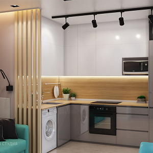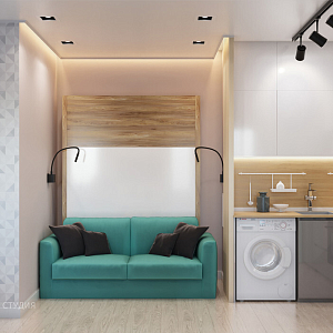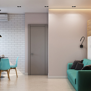 Интерьер гостиной с зонированием, кухней-нишей и кухней-гостиной с коридором в современном стиле и в стиле лофт, проект «Дизайн-проект 1 комн. квартиры 40 кв.м. г.Орел.» №19