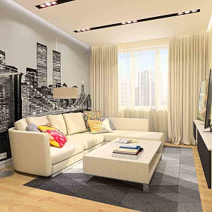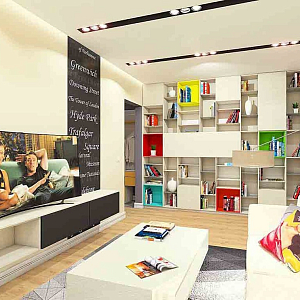 Интерьер гостиной с балконом, проект «Город Тюмень, м-н Преображенский. Яркая квартира для друзей. 2015 год» №10