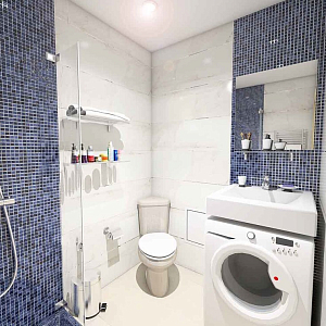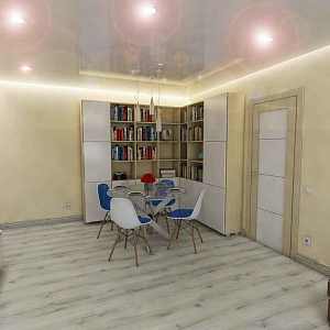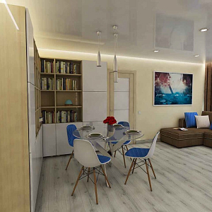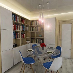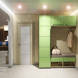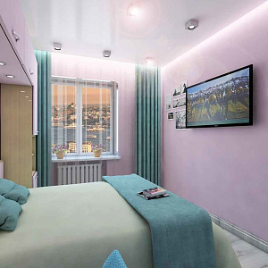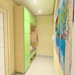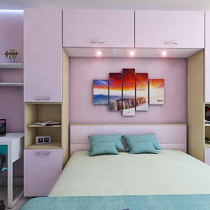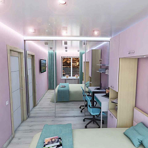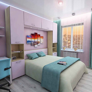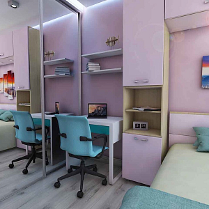 Интерьер детской c рабочим местом, гардеробной, кладовкой, гардеробной со шторой и гардеробной зой кроватью в современном стиле, проект «Город Тюмень, Киевская д.58. Новая жизнь Хрущевки. 2015 год» №7