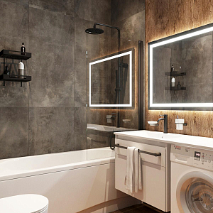 Интерьер спальни cветовыми линиями, подсветкой настенной, подсветкой светодиодной и светильниками над кроватью в стиле лофт, проект «Квартира в стиле лофт с теплыми цветовыми акцентами» №6
