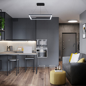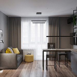 Квартира в стиле лофт с теплыми цветовыми акцентами