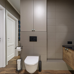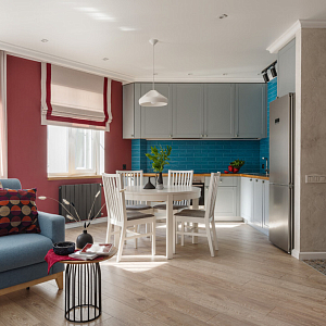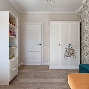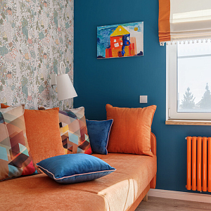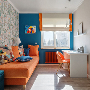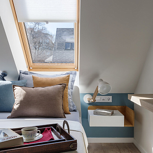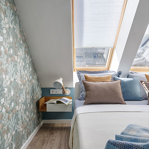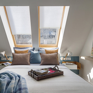 Интерьер спальни с жалюзи в скандинавском стиле, проект «Квартира с мансардой» №9