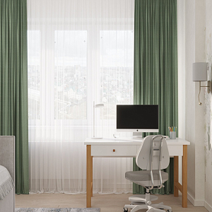 Интерьер c рабочим местом в современном стиле, проект «Синий на Высоте» №1