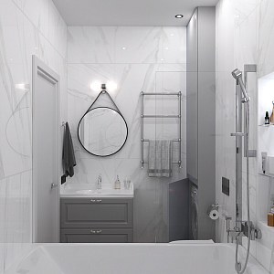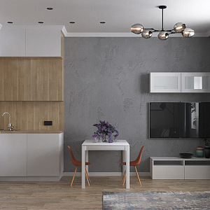Интерьер с open space в современном стиле и в стиле лофт, проект «Однокомнатная квартира в ЖК Аврора парк» №28