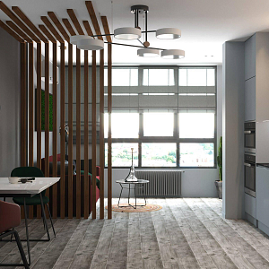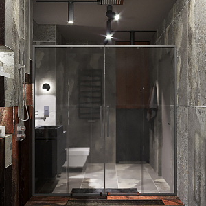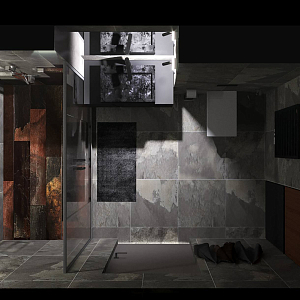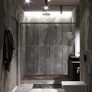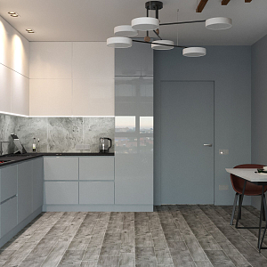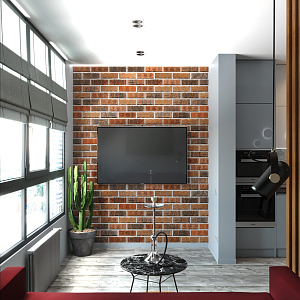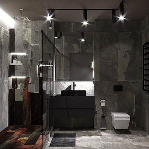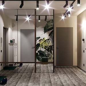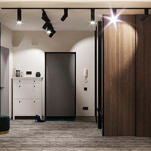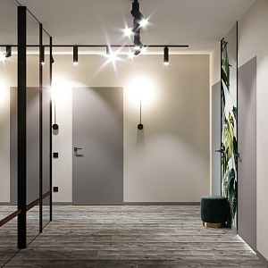 Интерьер с подсветкой настенной, подсветкой светодиодной, проходной, с подсветкой и световыми линиями в стиле лофт и в современном стиле, проект «ЖК Тургенев. Минимализм» №32