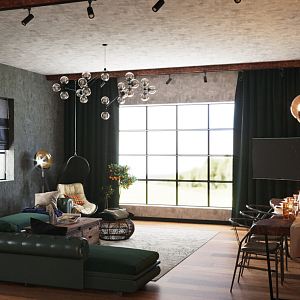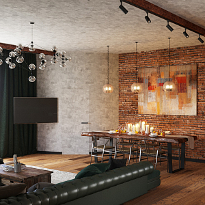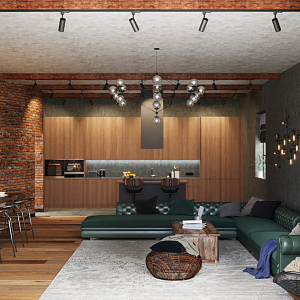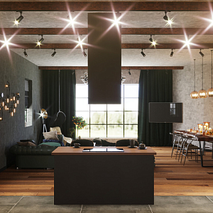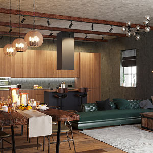 Кухня-гостиная в стиле лофт