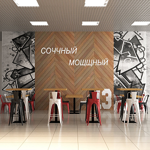 Интерьер кафе и ресторана в современном стиле, проект «Фудкорт Black Star Burger в Краснодаре. ТРК "СБС" и ТЦ "Красная площадь"» №3